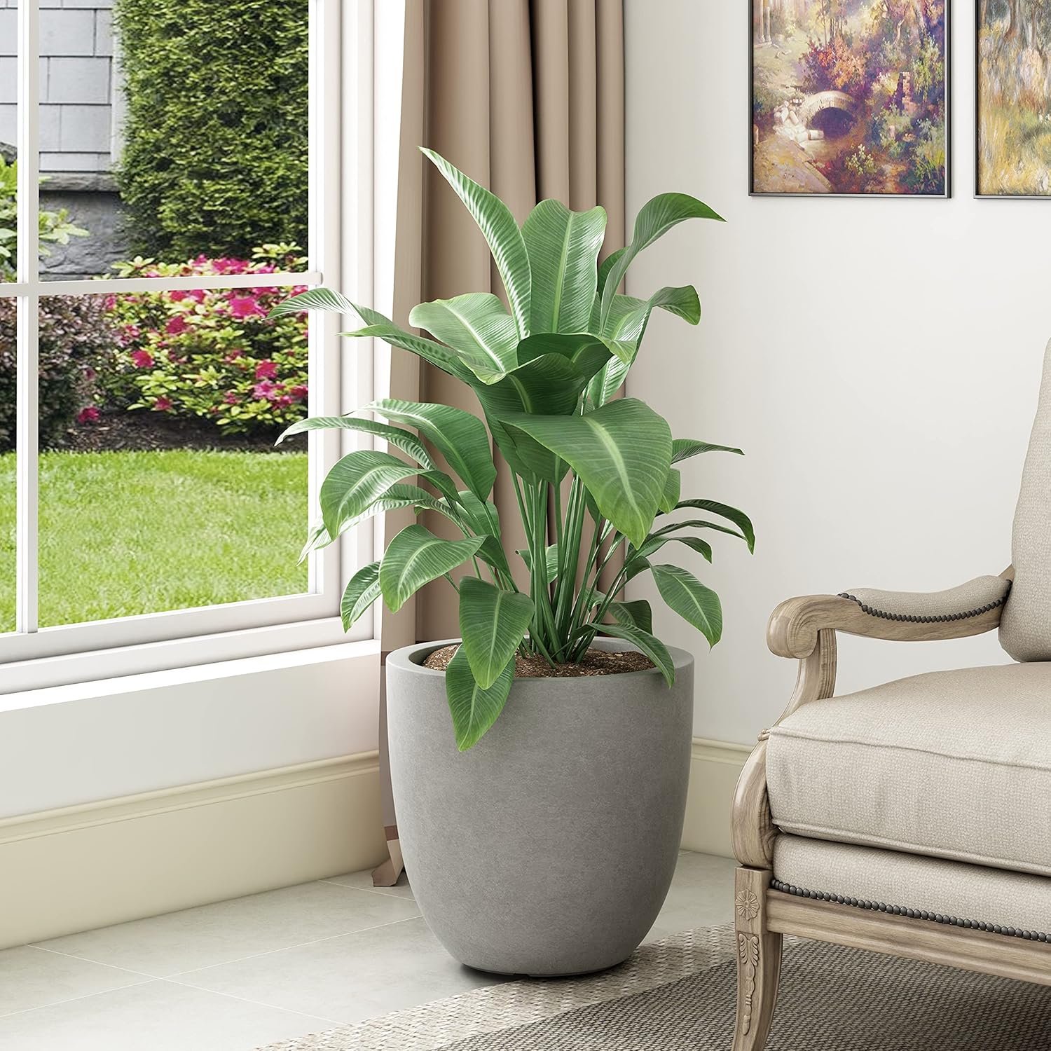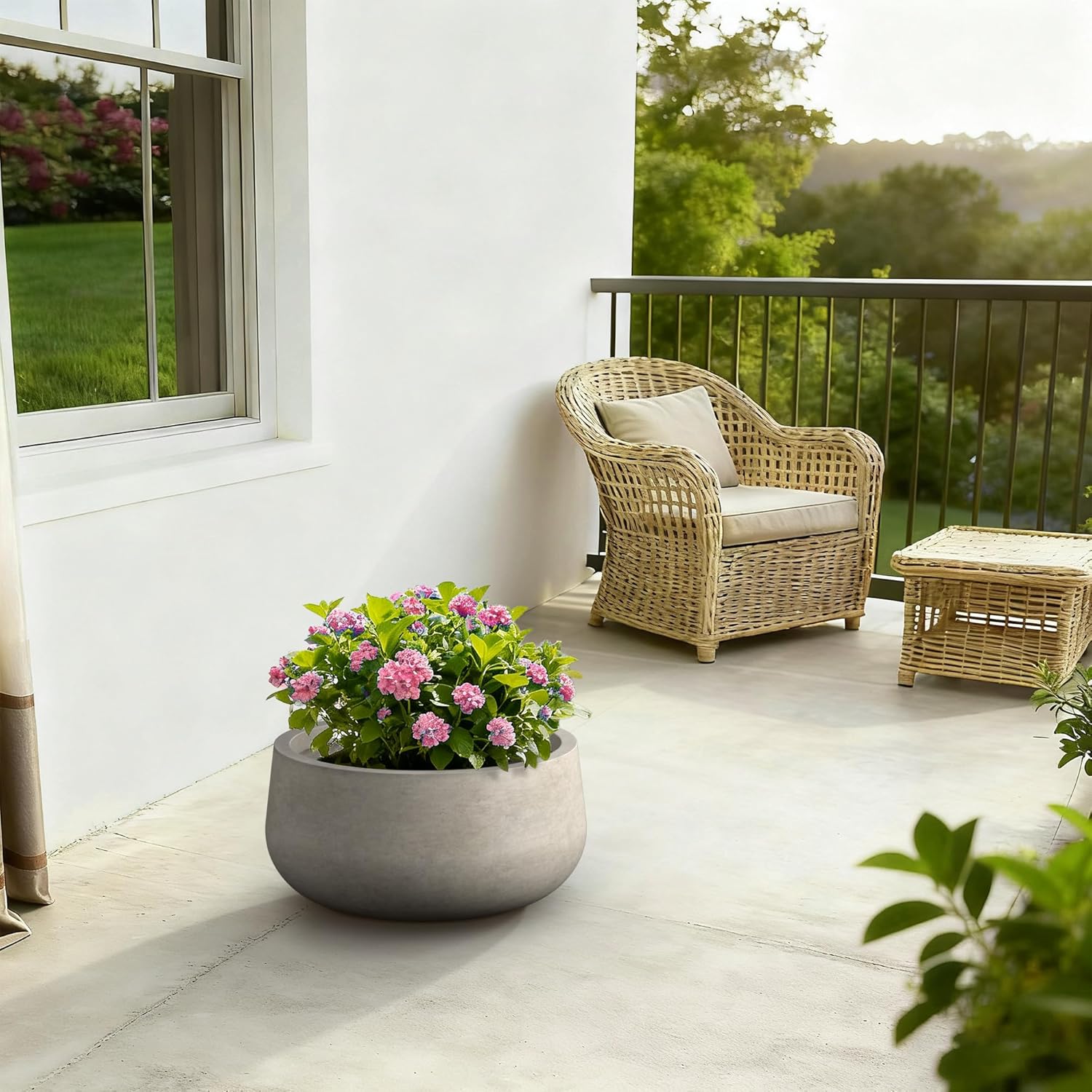 Kante 18 Inch Dia Round Concrete Planter, Indoor Outdoor Large Plant Pot with Drainage Hole and Rubber Plug for Home Patio Garden, Weathered Concrete