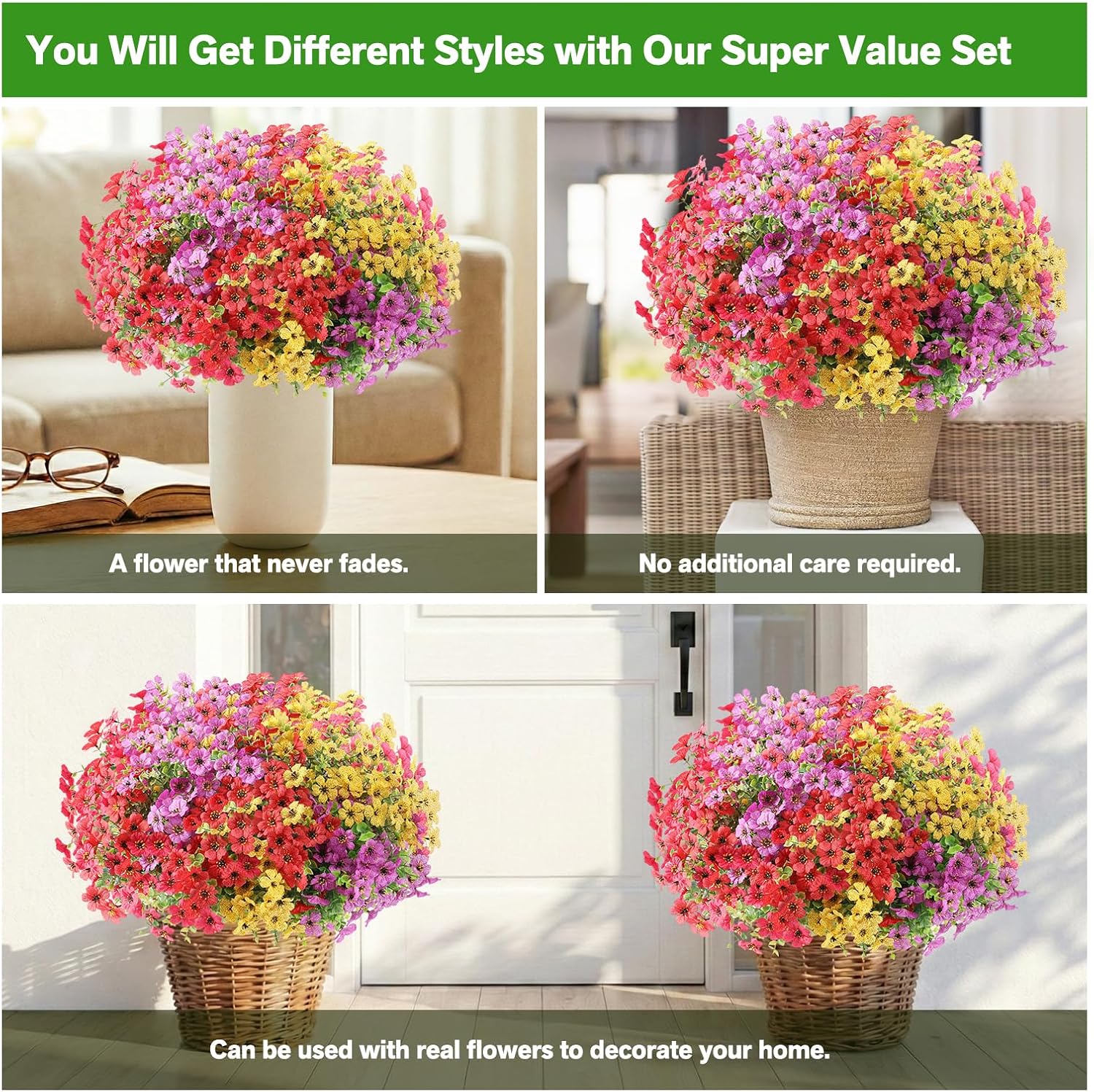 Artificial Flowers for Outdoor,Silk Flowers No Fade Fake Plastic Flowers Faux Plants for Outdoors Outside Front Porch Hanging Planter Window Box Garden Home Decoration,13 Pack(Multi-Colour2)