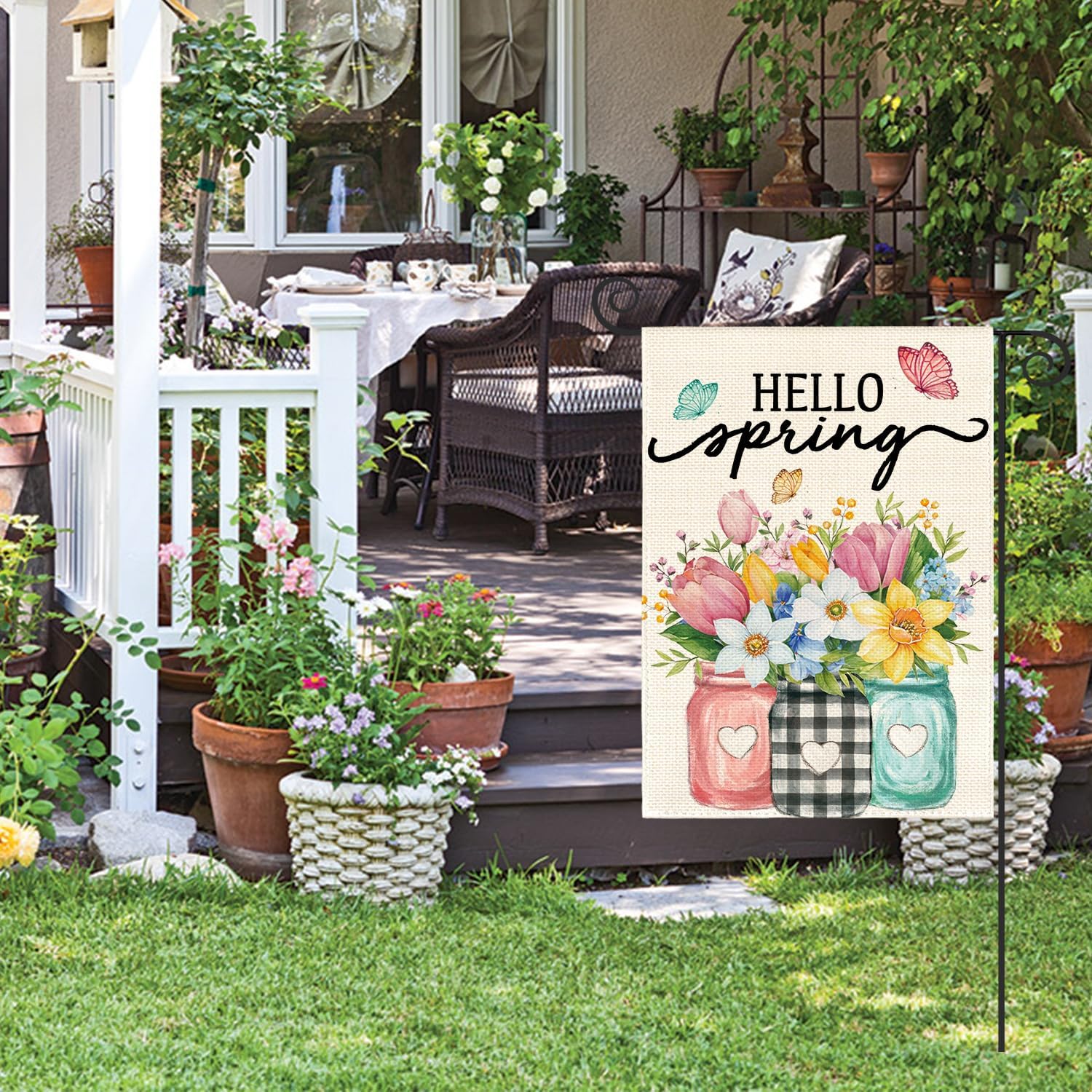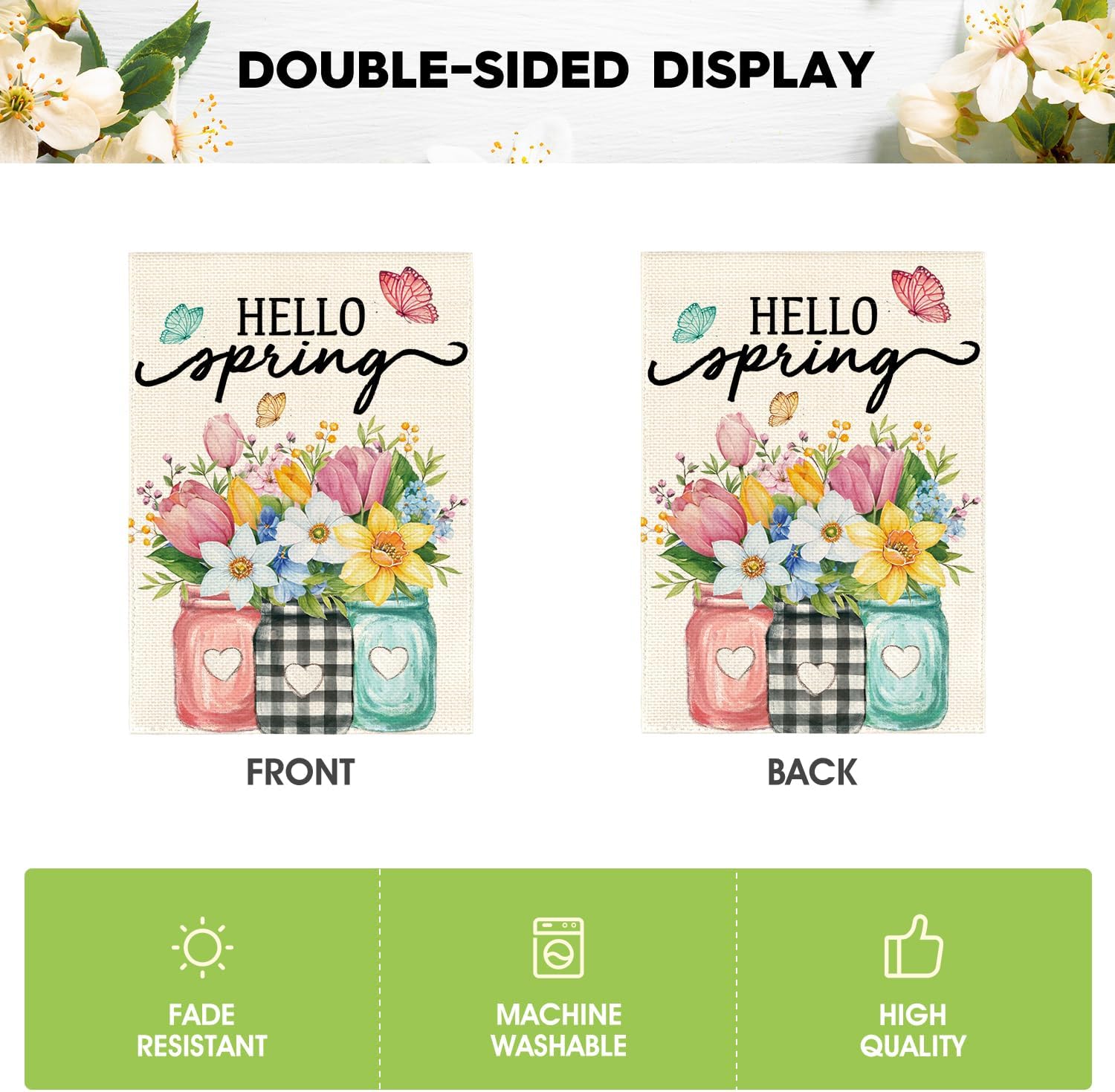 AVOIN colorlife Hello Spring Garden Flag 12×18 Inch Double Sided Outside, Floral Mason Jar Holiday Yard Outdoor Flag