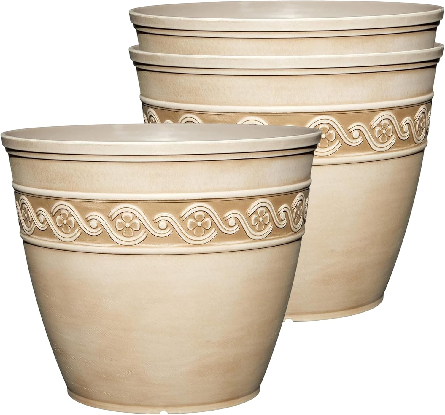 Classic Home and Garden Corinthian Resin and Stone Pots for Plants: Enhance your decor with our traditionally design garden pots, combining classic aesthetics with trendy colors. Coming in a set of 1, this flower pot can be used as both an outdoor or indoor planter, seamlessly complementing a variety of plant arrangements. Crafted from resin, silicon and stone dust, our plant pots offer a premium look and feel without the weight and price of comparable concrete planters. This round plant pot is UV-resistant, ensuring it won’t crack or fade over time offering long-lasting durability. Featuring pre-drilled drainage holes, these classic planters prevent overwatering and protect your plants from root rot. Whether used as porch planters on your patio or deck or as indoor plant containers, these versatile pots are perfect for flowers, vegetables, herbs, and more. Available in several sizes to suit various plant needs, our pot for plants brings both style and function to any space.