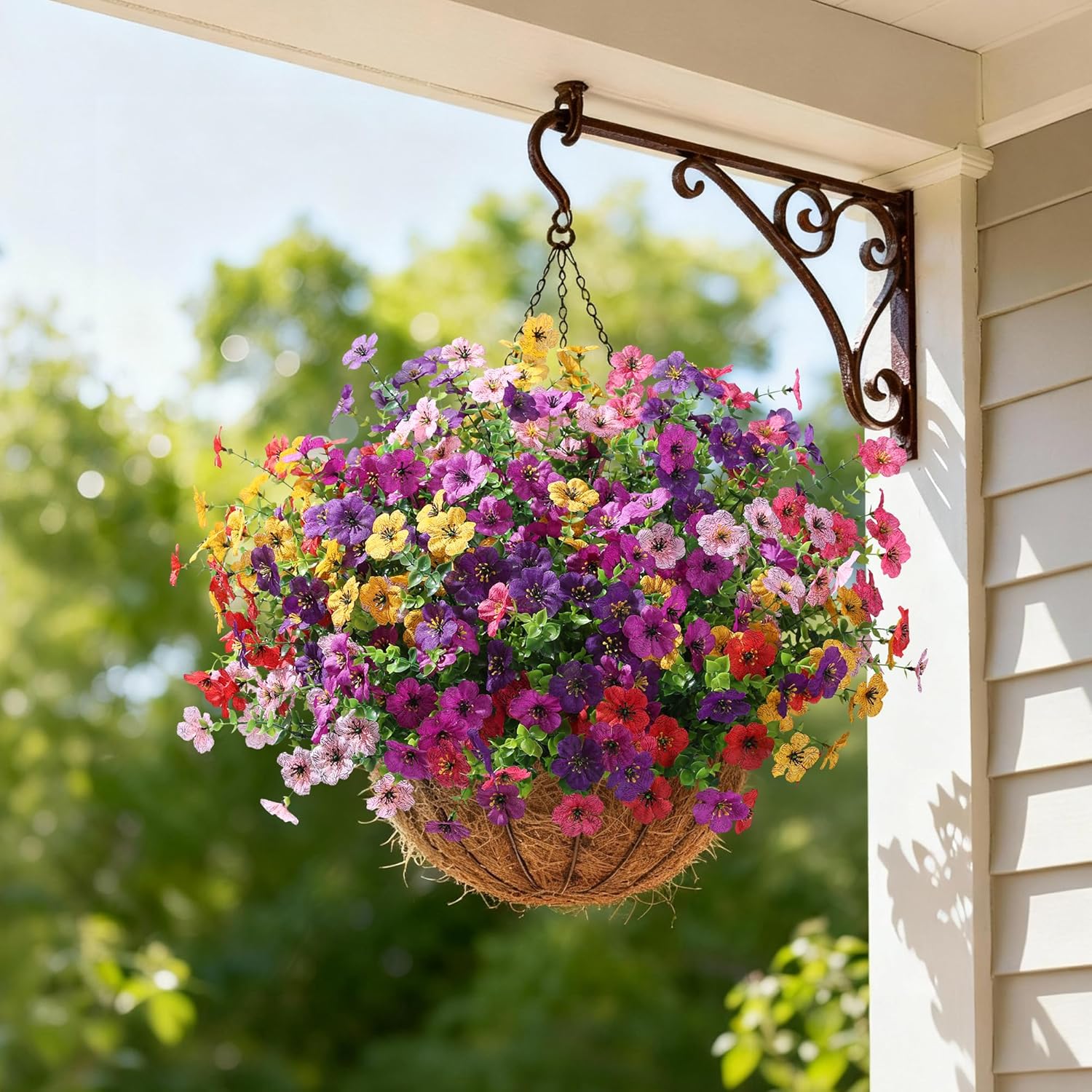 Our artificial flower can be paired with a hanging basket(not include), allowing you to suspend it from a door beam or any desired location, so you can enjoy the beautiful scenery just by looking up.