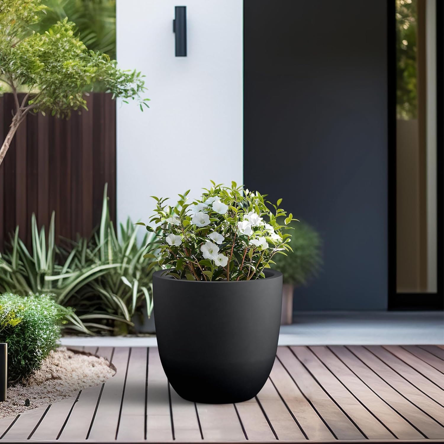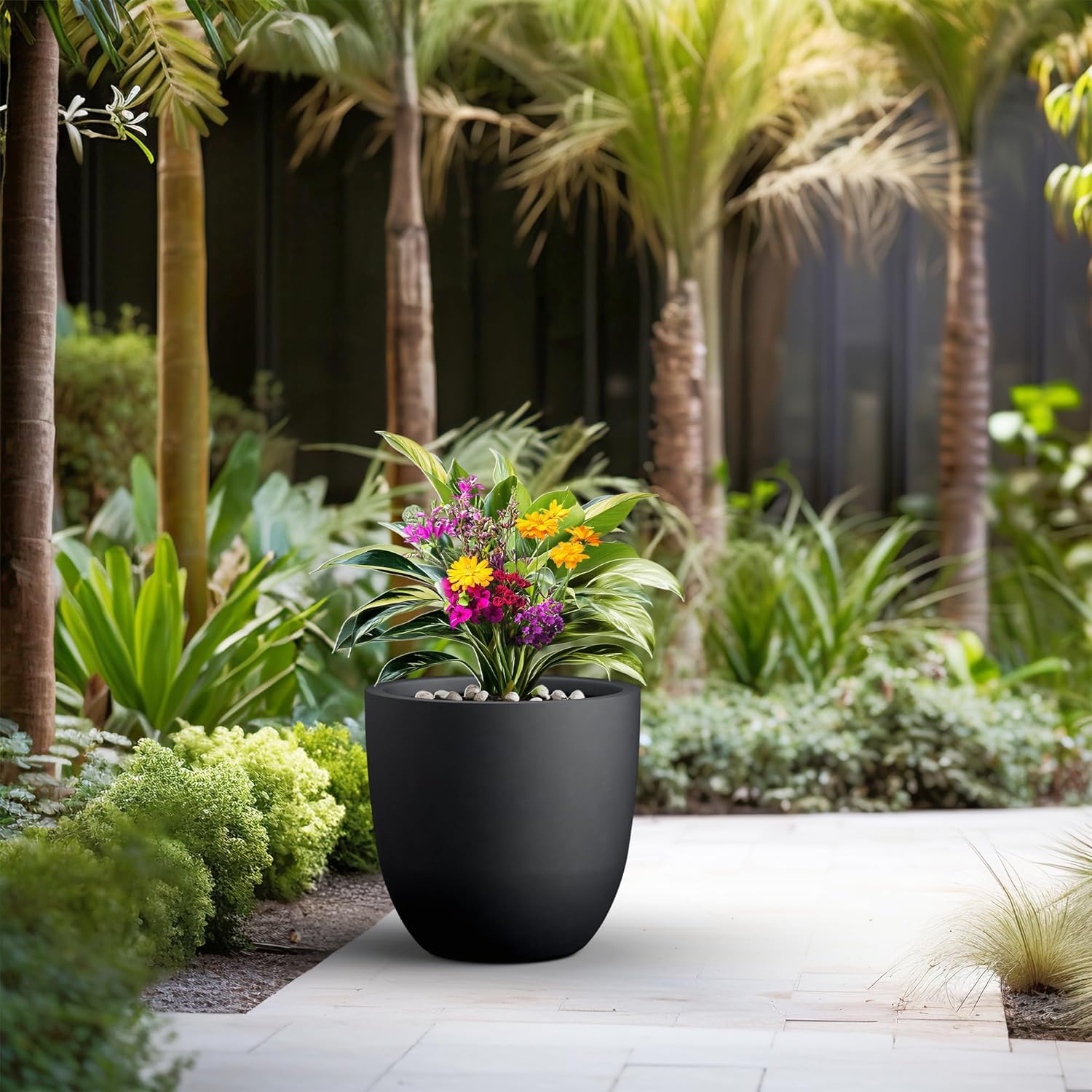 Kante 18 Inch Dia Round Concrete Planter, Indoor Outdoor Large Plant Pot with Drainage Hole and Rubber Plug for Home Patio Garden, Black