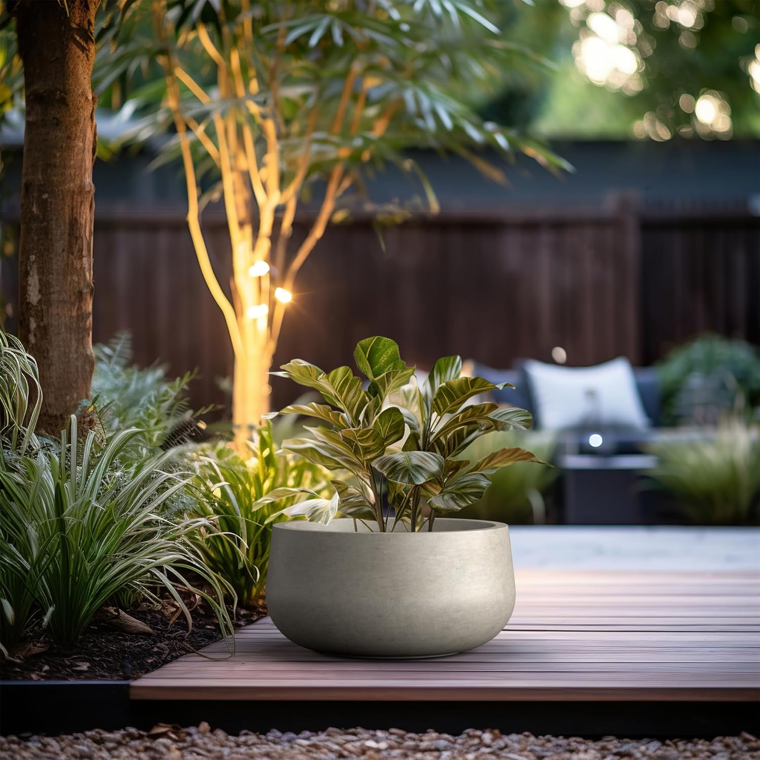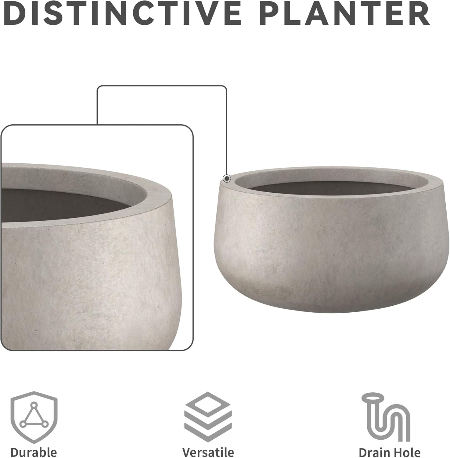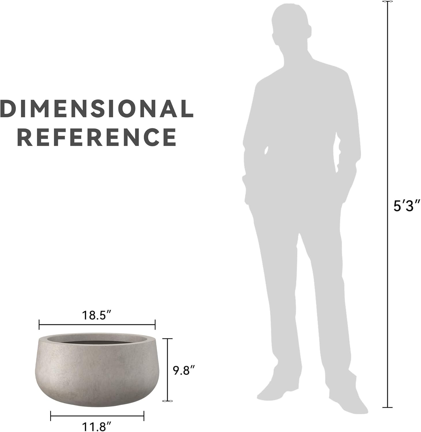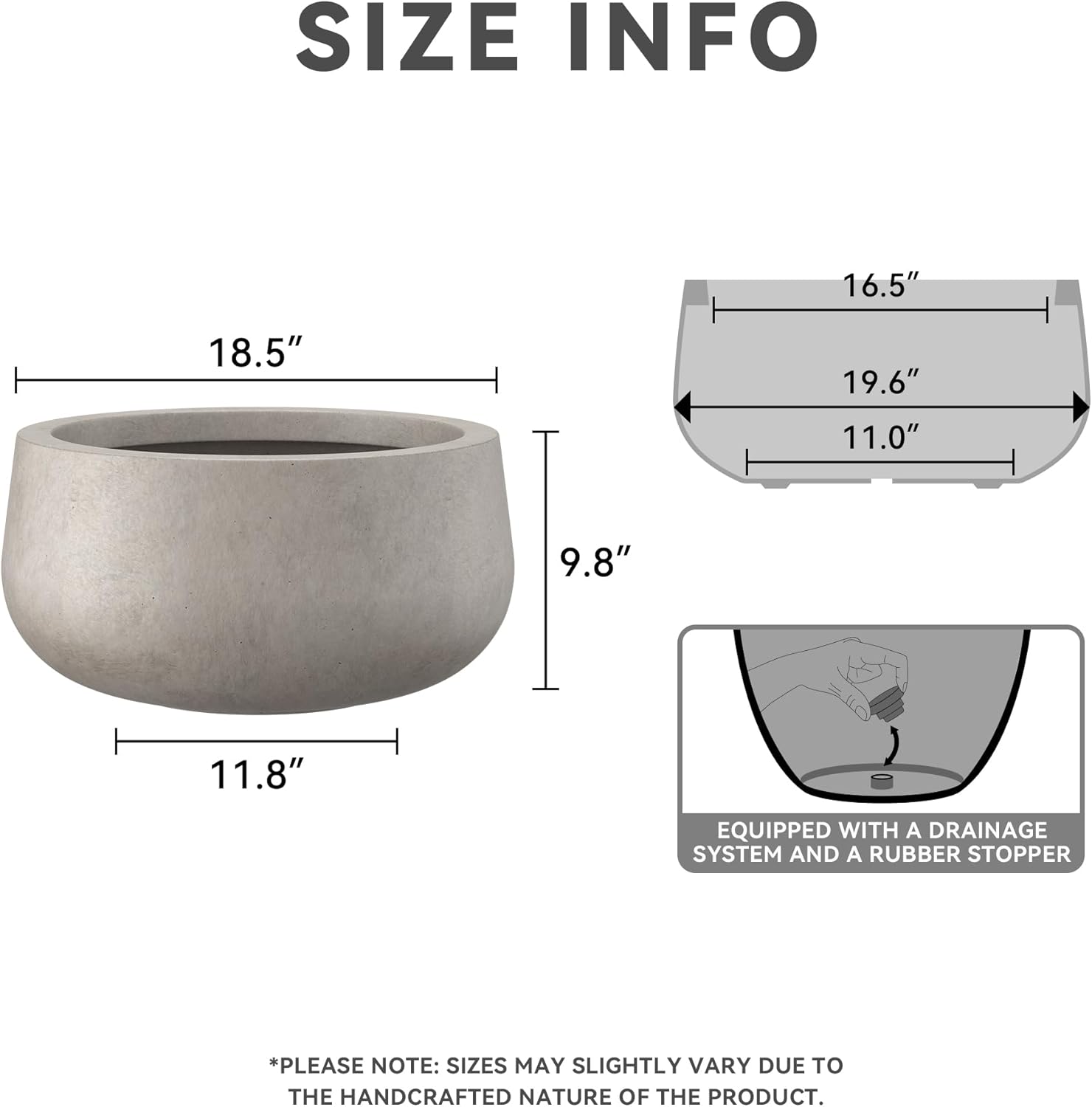 Kante 19.6″ Dia Round Concrete Planter, Cement Plant Pots with Drainage Hole and Rubber Plug for Outdoor Indoor Garden Home, Modern Curvaceous Design, Weathered Concrete