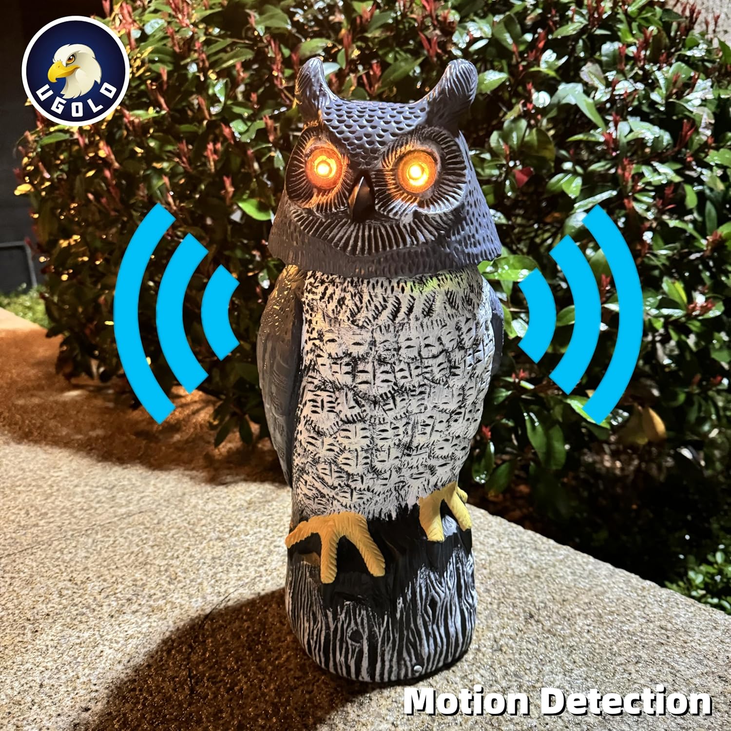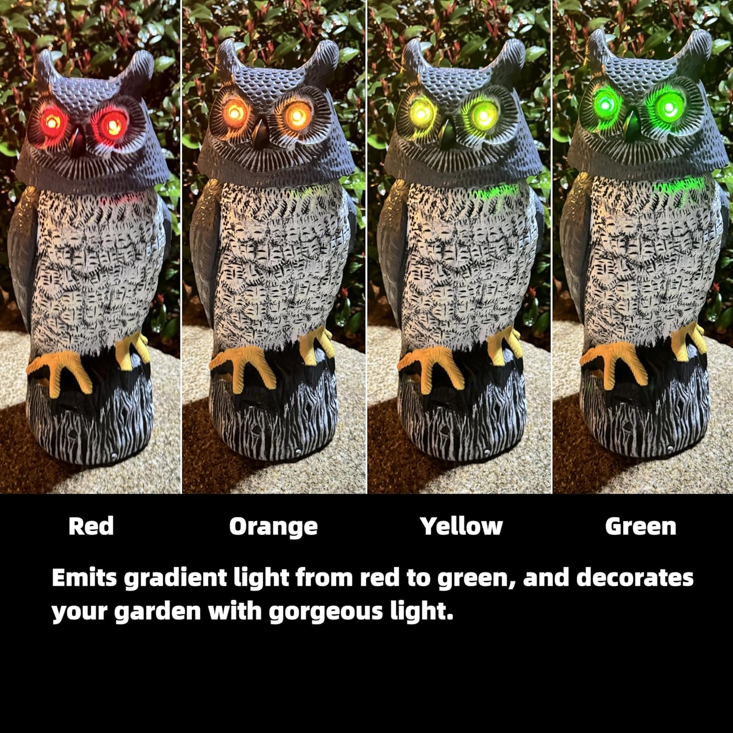 • Multi-Functional – Activated by a built-in sensor, our owl features a rotating head, a pair of glowing colored eyes and hooting sounds. The lifelike owl will make your garden and home full of vitality.