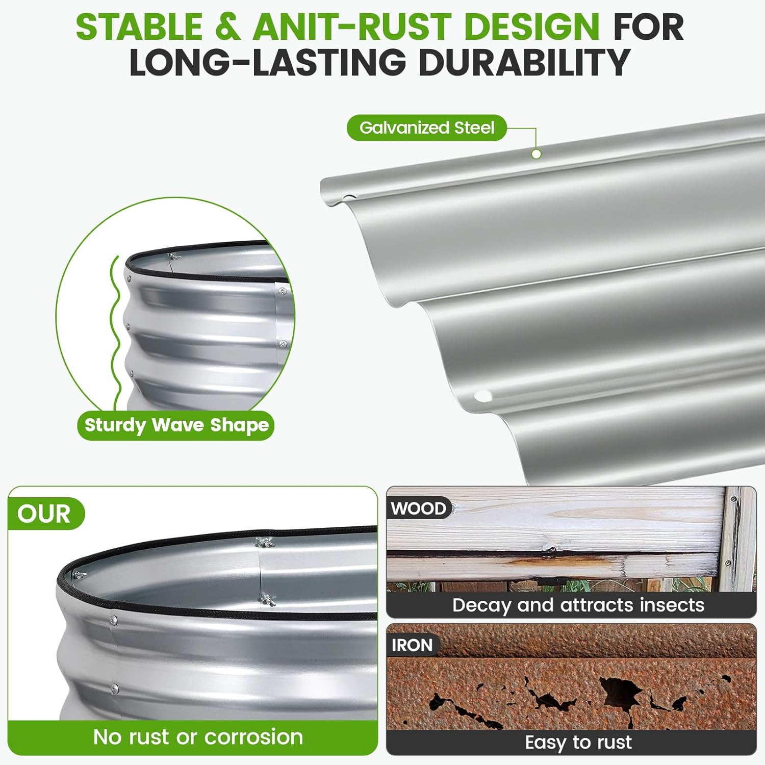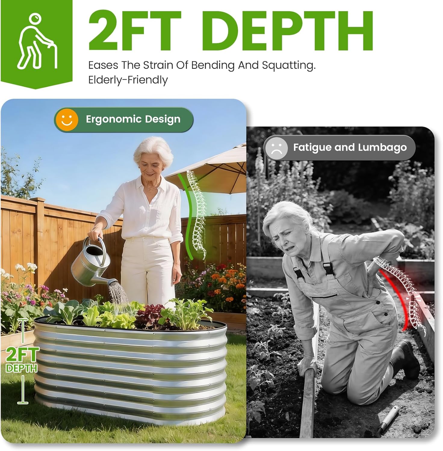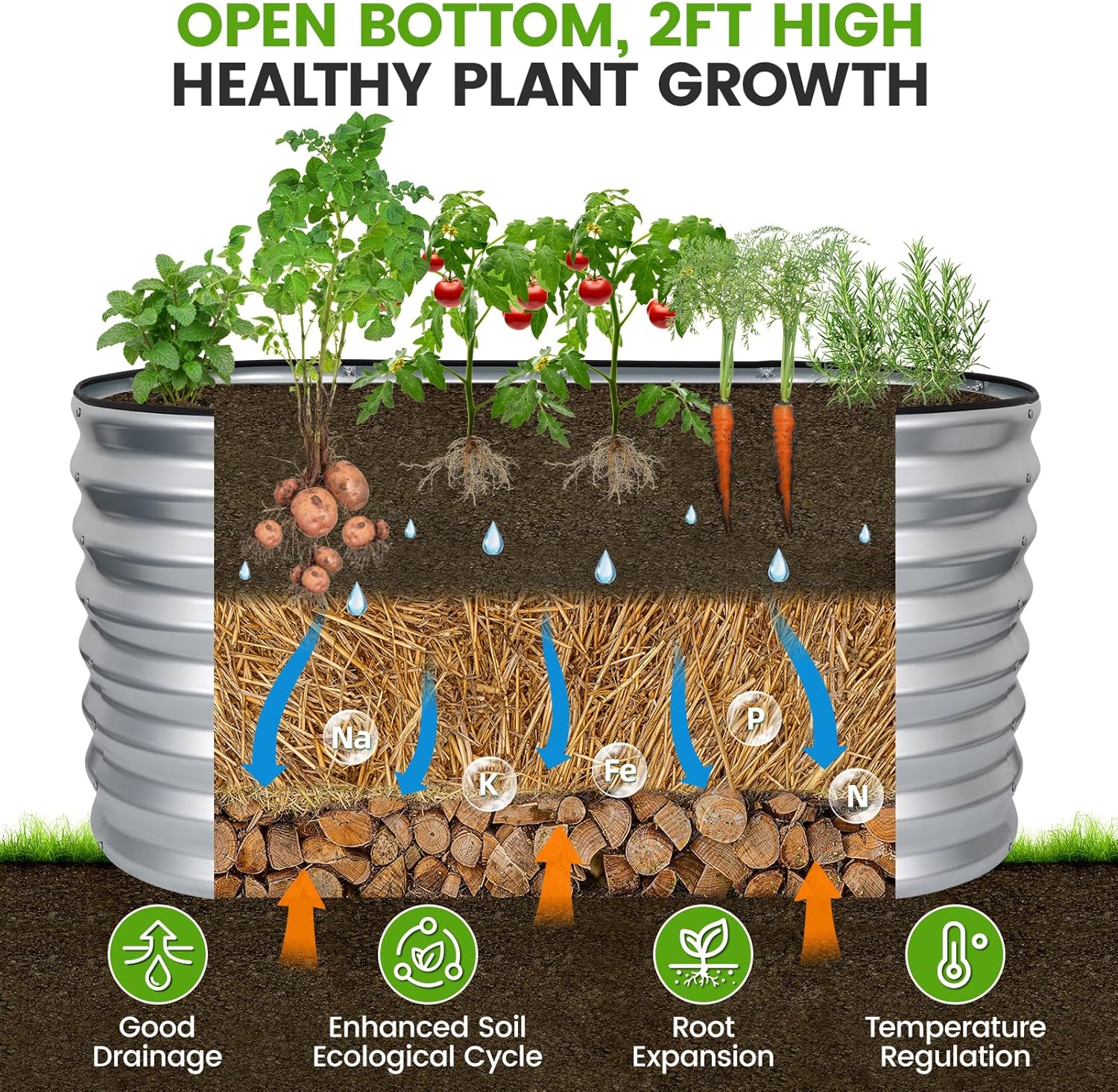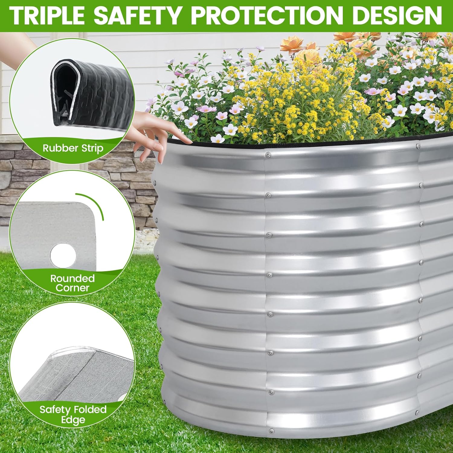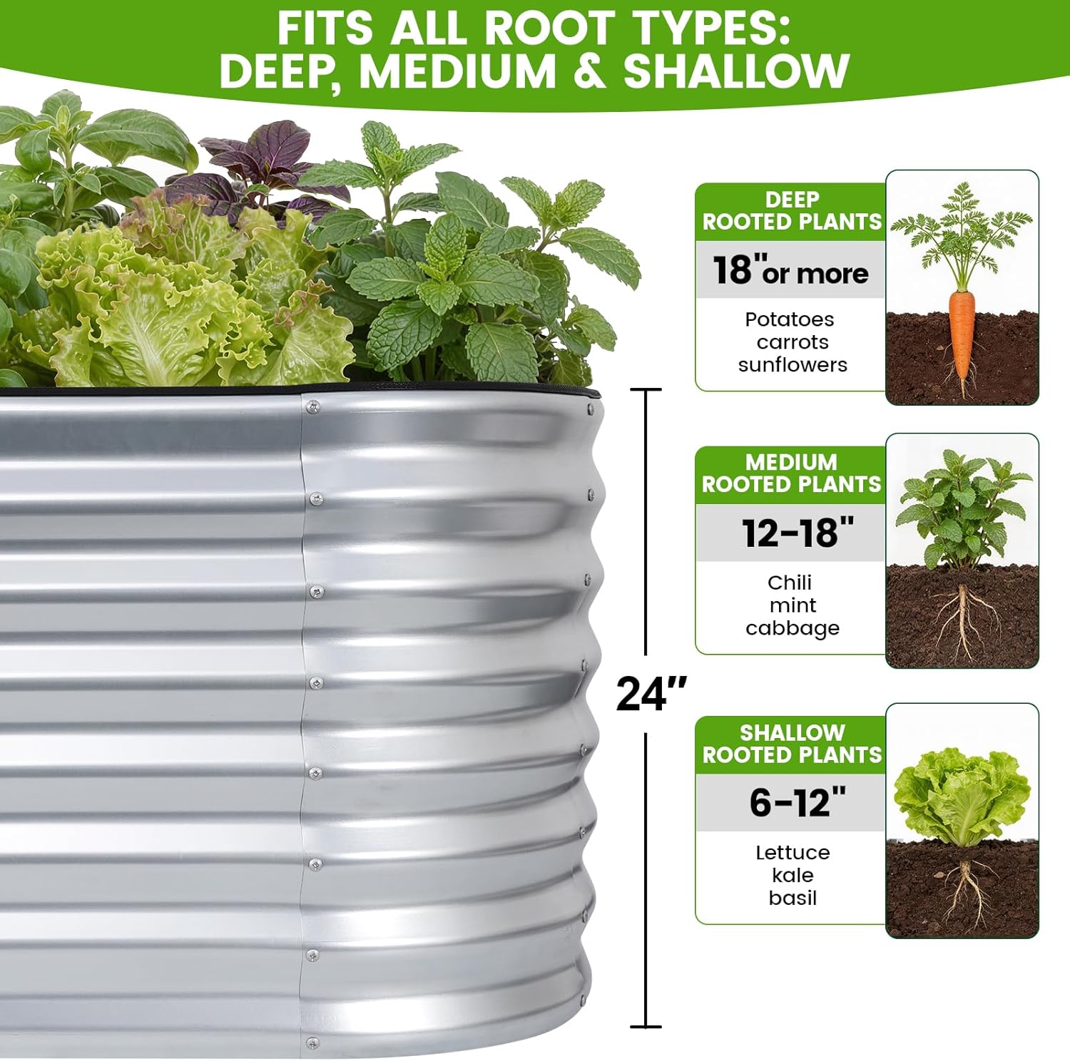 VIREO GARDEN Galvanized Raised Garden Bed Outdoor 24” Deep | Oval Metal Garden Beds with Easy Assembly & Planter Box for Planting Deep Root Vegetables Fruits Flowers, 4x2x2ft Silver
